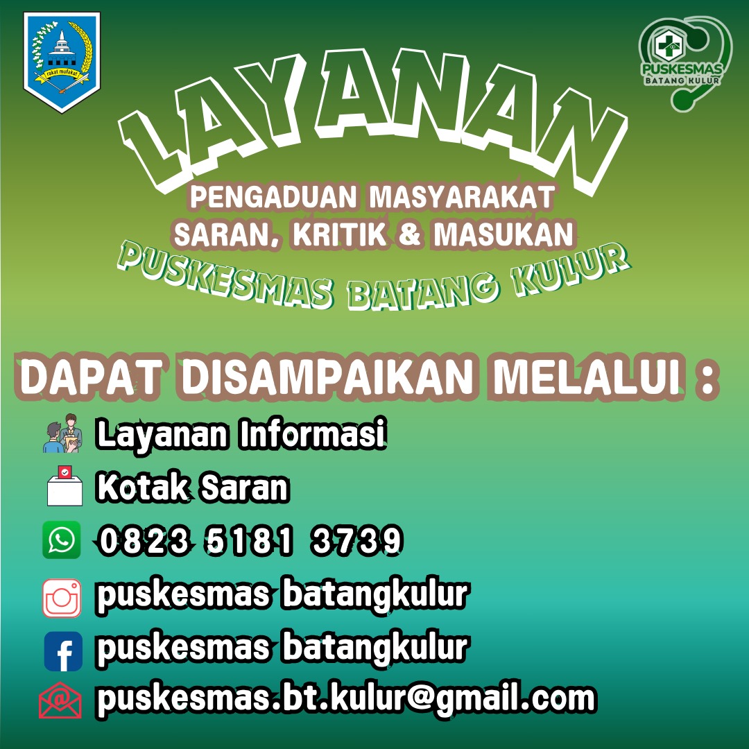 Terima kasih atas penilaian yang telah anda berikan, masukan anda sangat bermanfaat untuk kemajuan unit kami agar terus memperbaiki dan meningkatkan kualitas pelayanan bagi masyarakat wilayah kerja Puskesmas Batang Kulur.