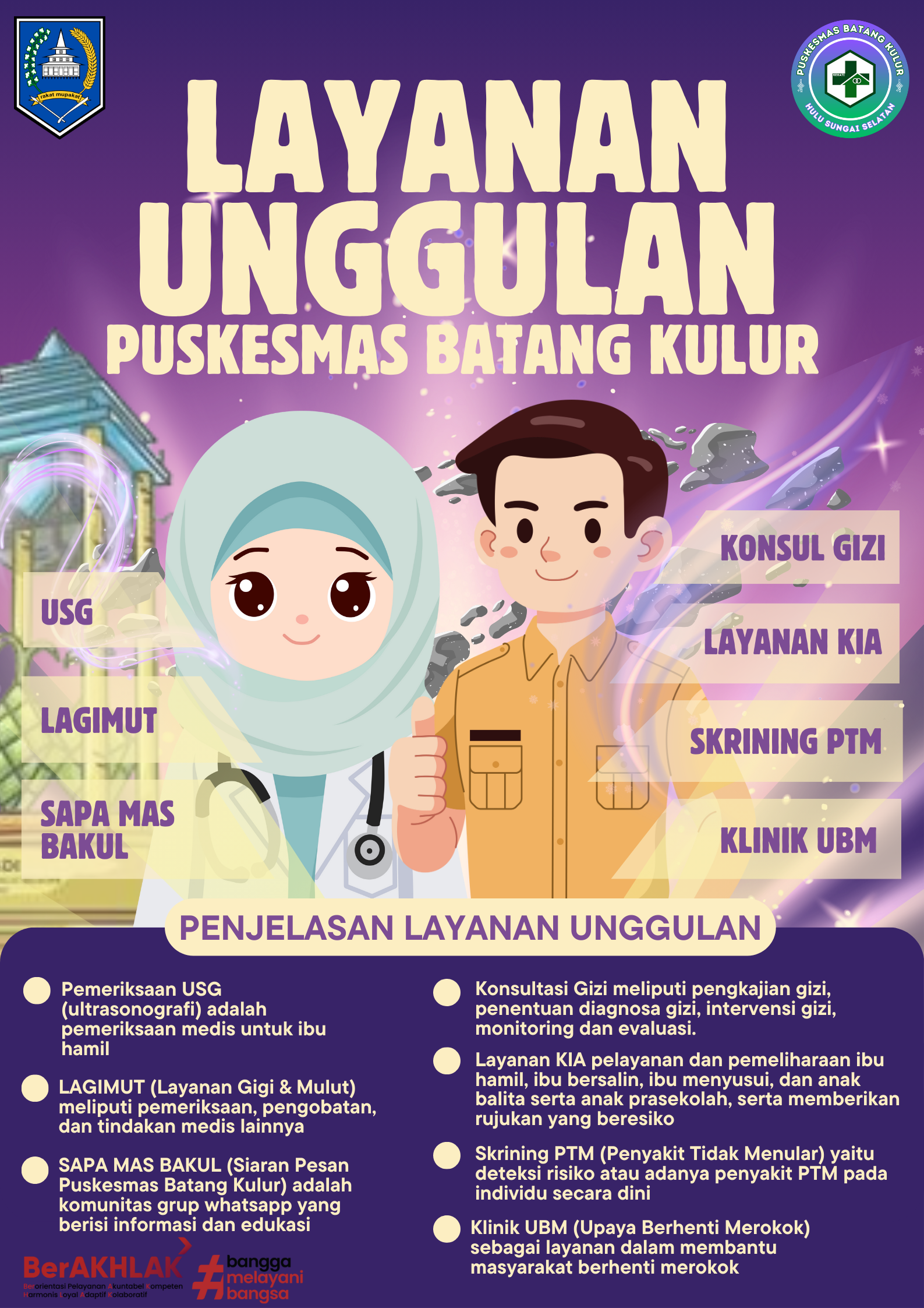 dalam berbagai pelayanan di Puskesmas Batang Kulur, ada beberapa pelayanan yang menjadi unggulan atau terbaru sebagai bentuk inovasi dalam penyelenggaraan pelayanan pada masyarakat. beberapa diantaranya seperti: